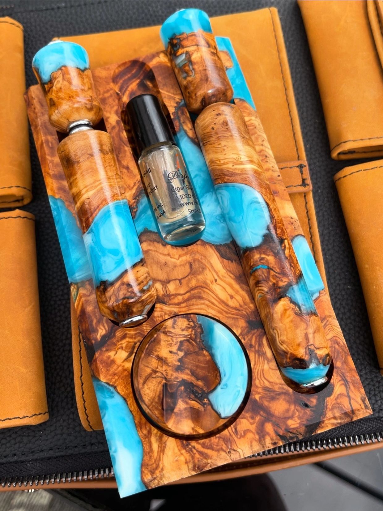 As a 30+ year devotee of fine cigars, and a passion for creating. I began crafting custom accessories for the cigar, pipe and fine pen enthusiast in 2016. Since then my works are now being used by customers spanning 31 countries. Holding partnerships with Perfec Cigar Solutions (The creator of the PerfecDraw), and with Sotelo Official Cigar Cases. Hand crafting each of my pieces with a wide range of materials. From Domestic and Exotic Woods. To Inlace Acrylester, Custom Cast Acrylics, as well as Hybrid Material (A combination of stabilized wood and resin).